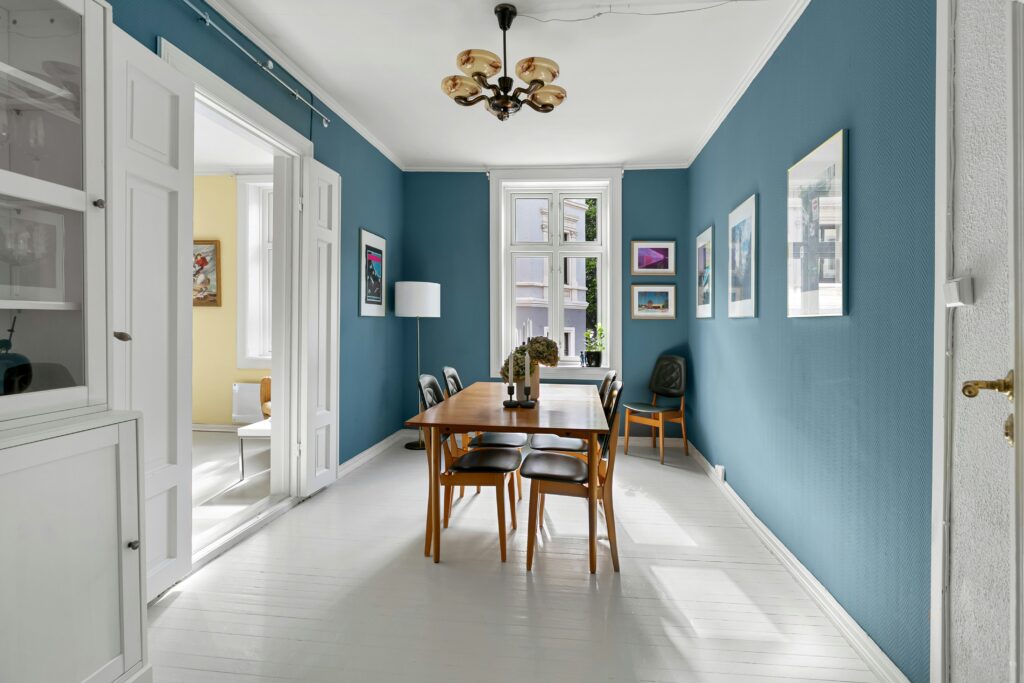 يتم تنظيف الجدران ومعالجة الشقوق والتشققات، لضمان سطح ناعم وجاهز للدهان. - استخدام مواد عالية الجودة